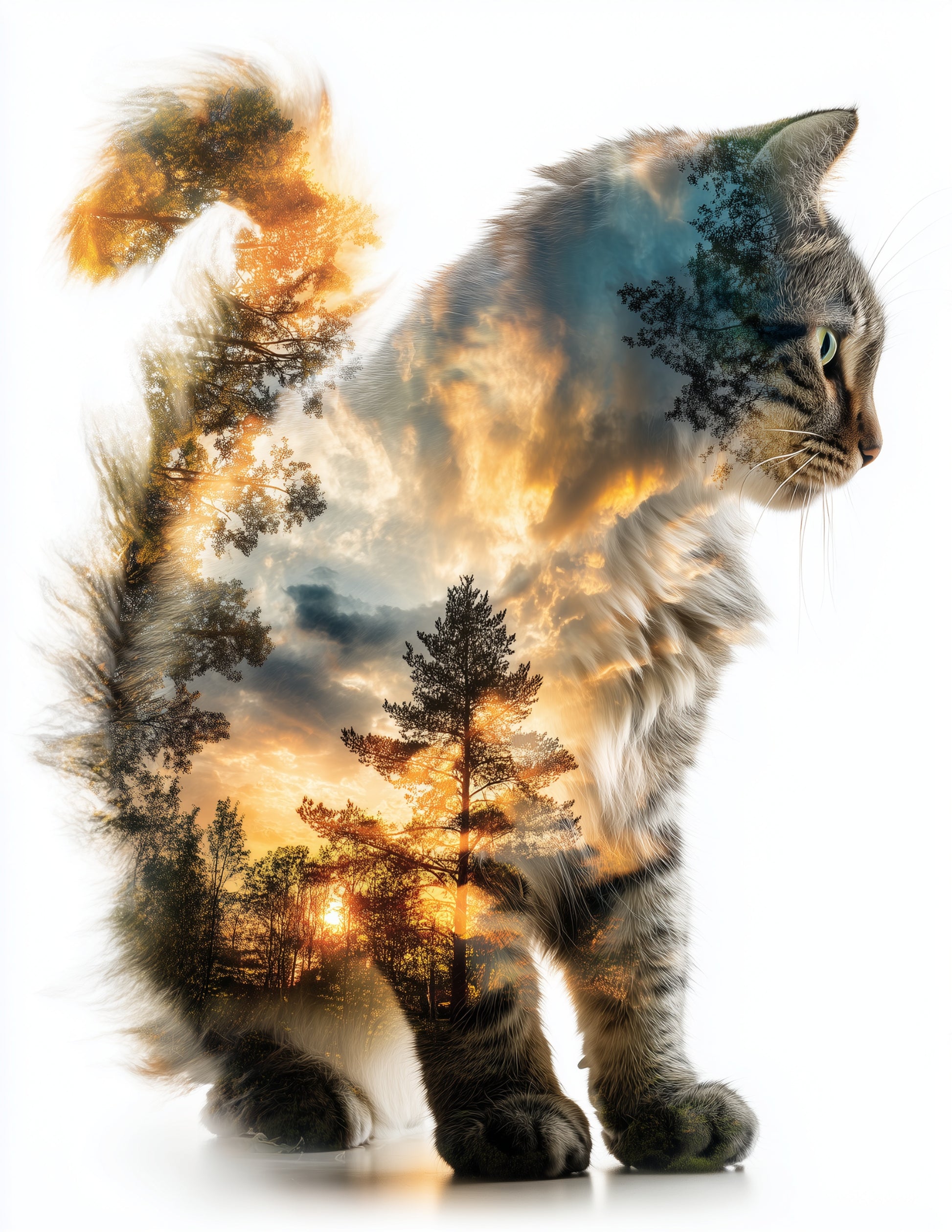 Cat — Double Exposure Art, Golden Dusk Digital Wall Art, 3 Sizes Included, Living Room Decor