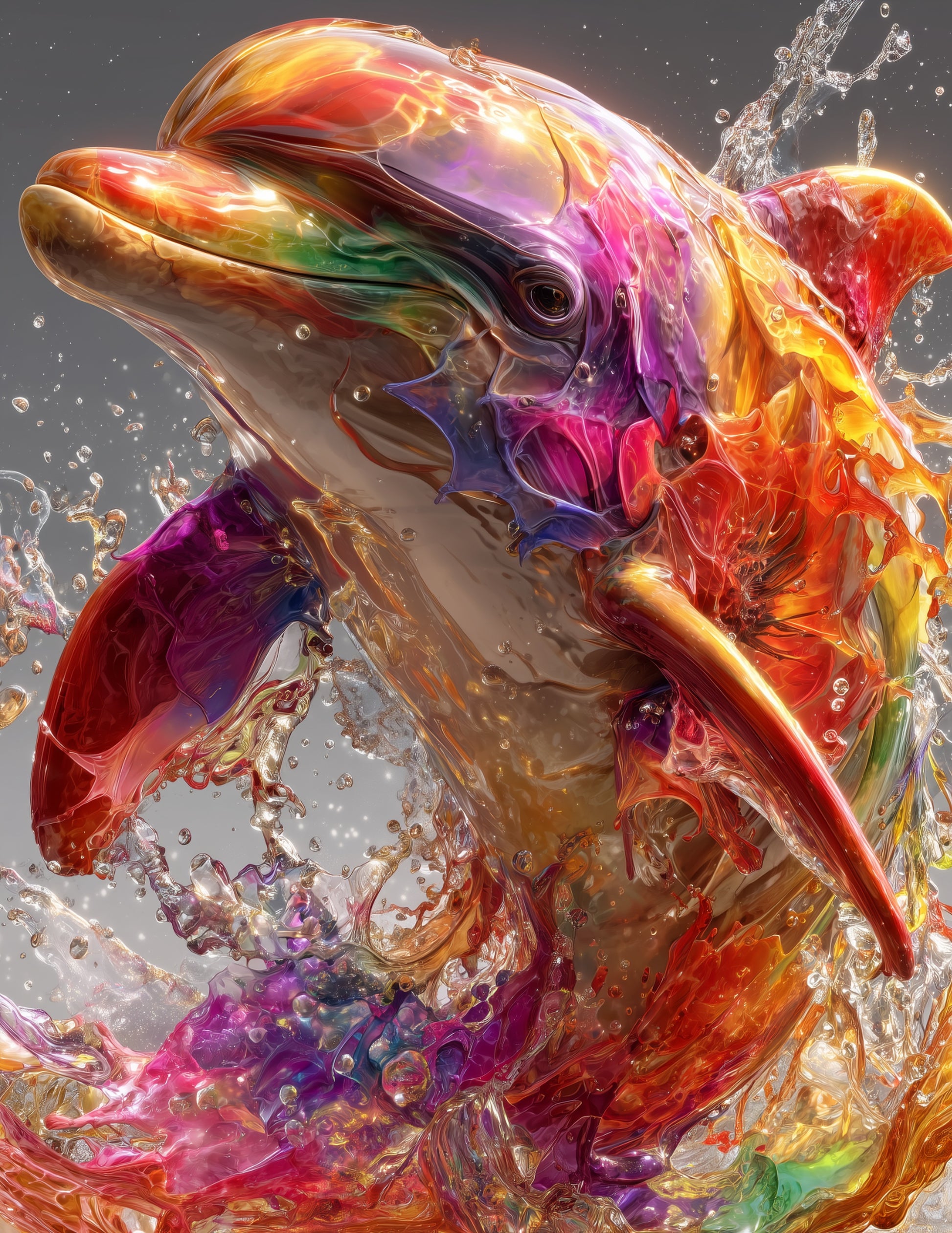Dolphin Watercolor Art Azure Bloom, Digital Wall Art, 3 Sizes Included, Living Room Decor