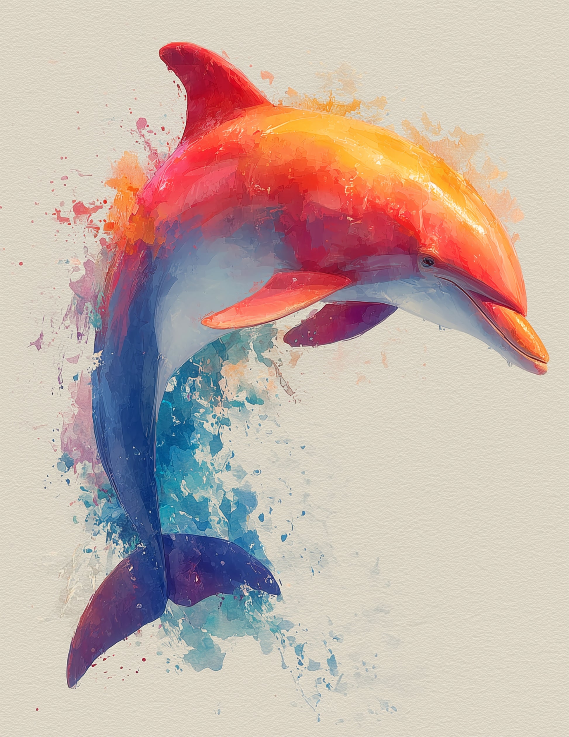Dolphin Watercolor Art Sunset Burst, Digital Wall Art, 3 Sizes Included, Living Room Decor