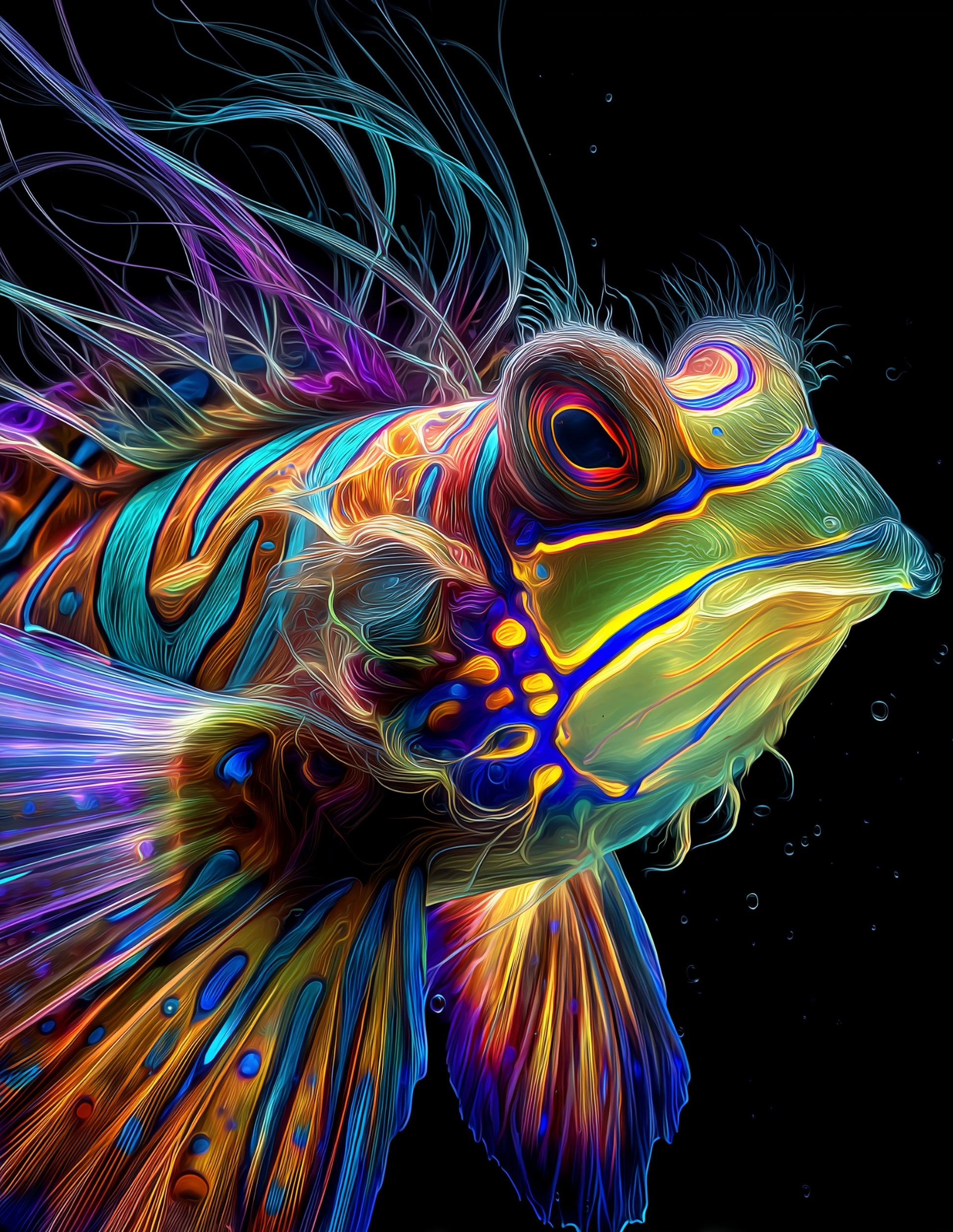 Mandarinfish — Chromatic Filament Art, Midnight Hues Digital Wall Art, 3 Sizes Included, Living Room Decor