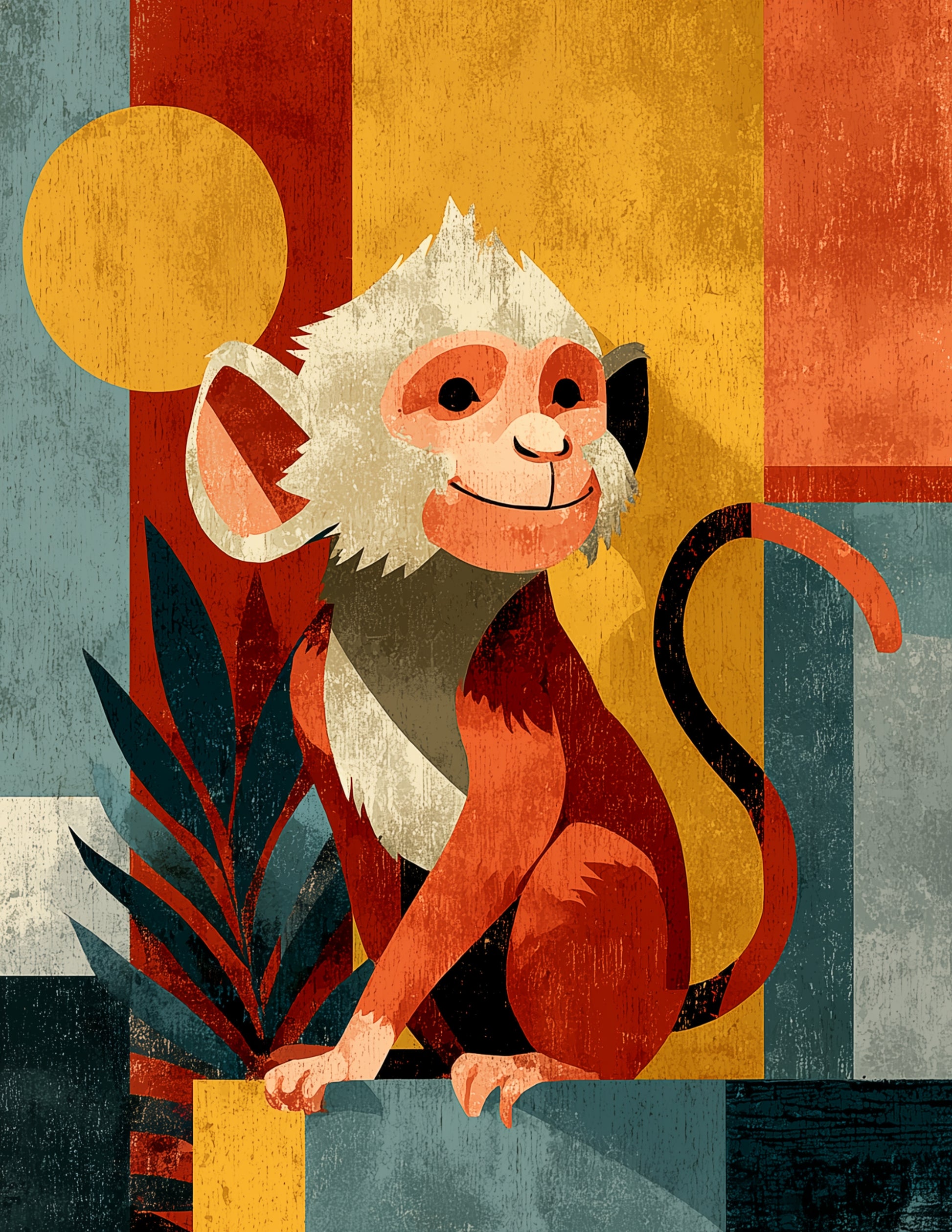 Bring the beauty of monkey nursery art into your home with this digital wall print, featuring subtle color variation and refined detail.