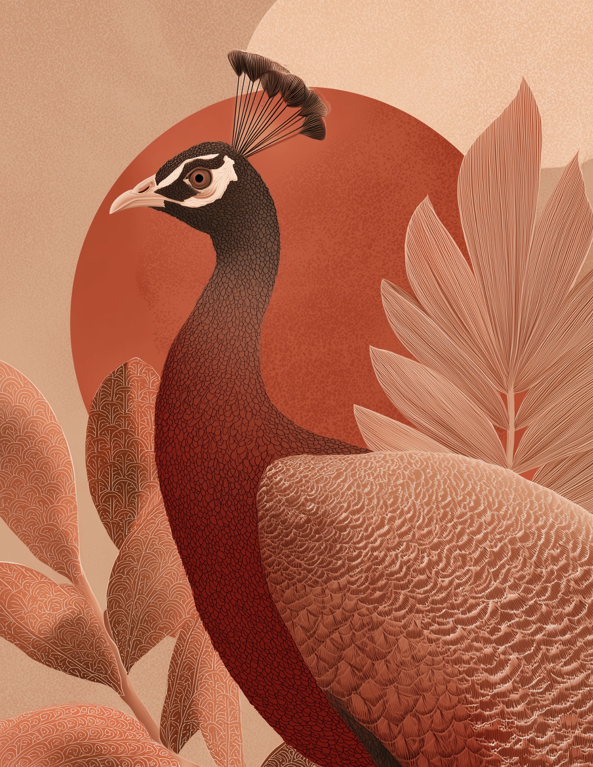 Bring the beauty of peacock boho art into your home with this digital wall print, featuring subtle color variation and refined detail.