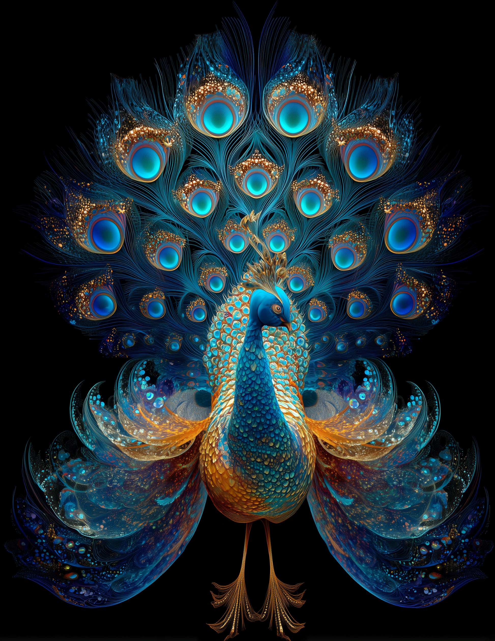 Peacock — Fractal Filigree Art, Sapphire Tones Digital Wall Art, 3 Sizes Included, Living Room Decor