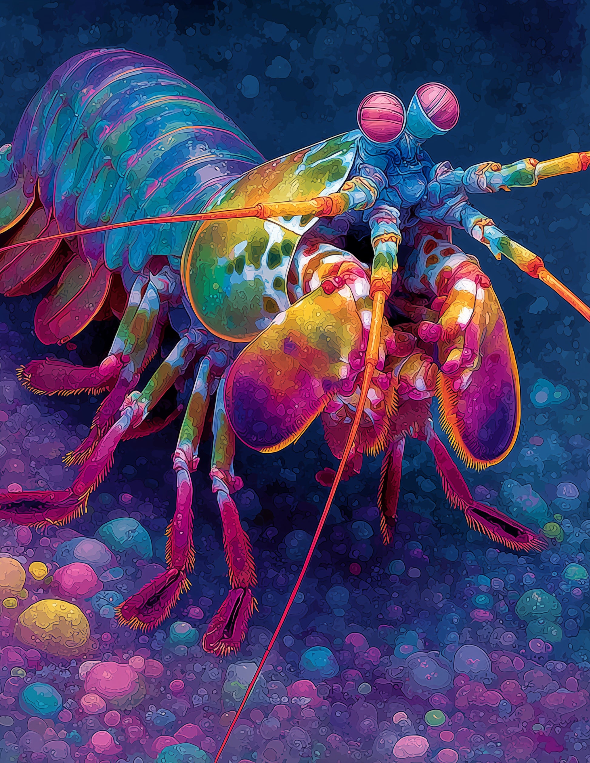 Bring the beauty of peacock mantis shrimp pop art into your home with this digital wall print, featuring subtle color variation and refined detail.