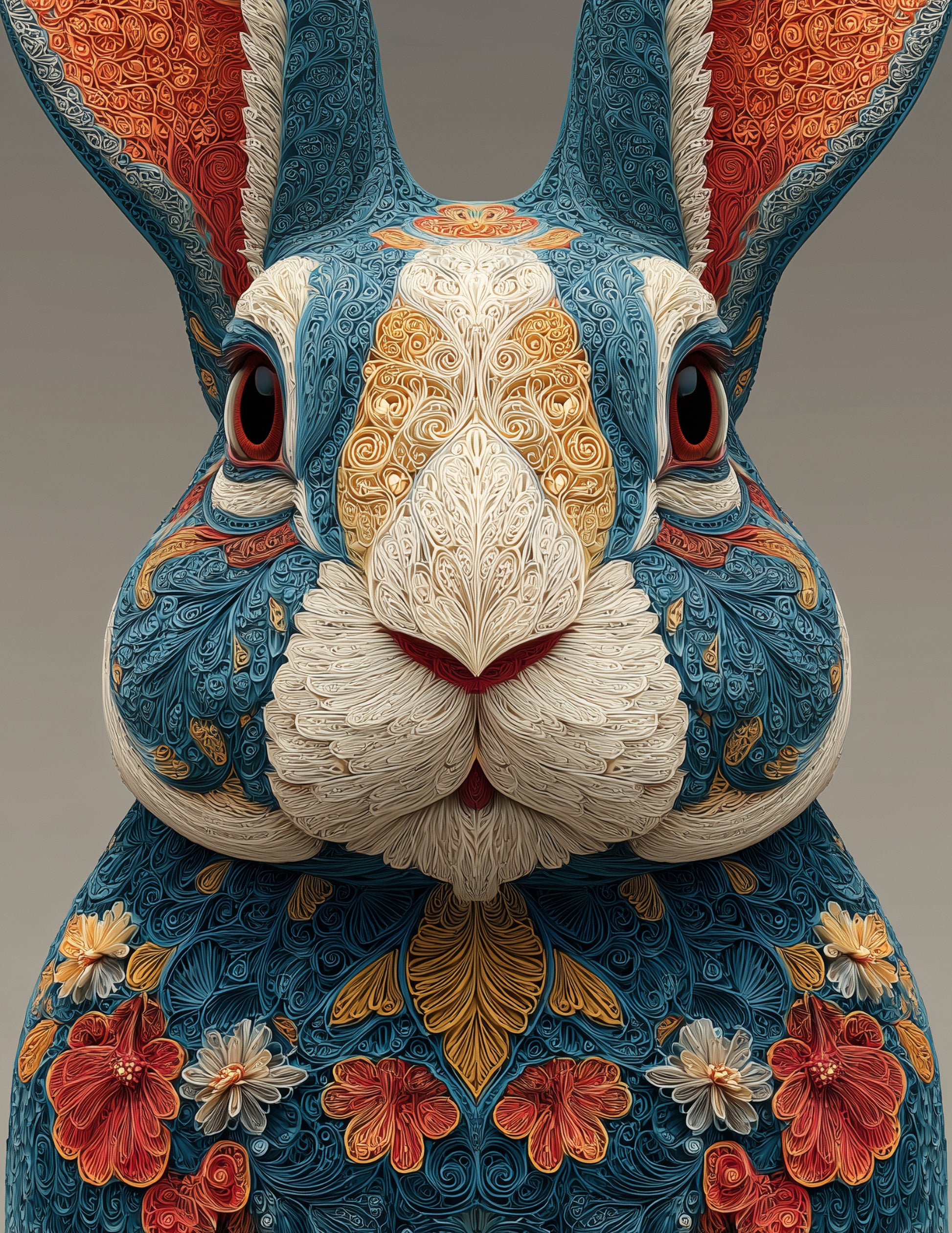 Rabbit — Fractal Filigree Art, Teal Tones Digital Wall Art, 3 Sizes Included, Living Room Decor