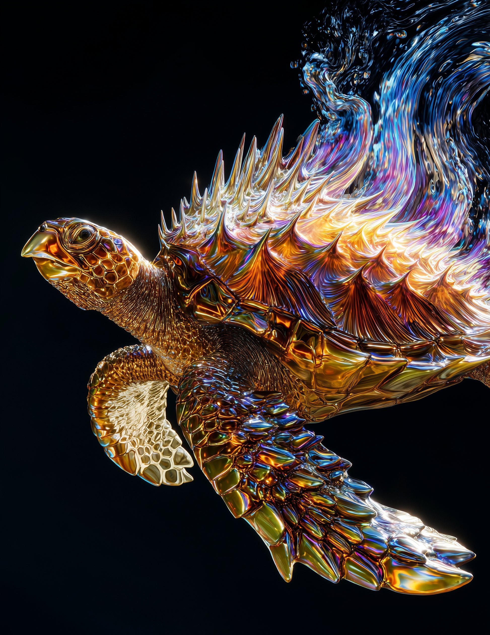 Bring the beauty of sea turtle ferrofluid art into your home with this digital wall print, featuring subtle color variation and refined detail.