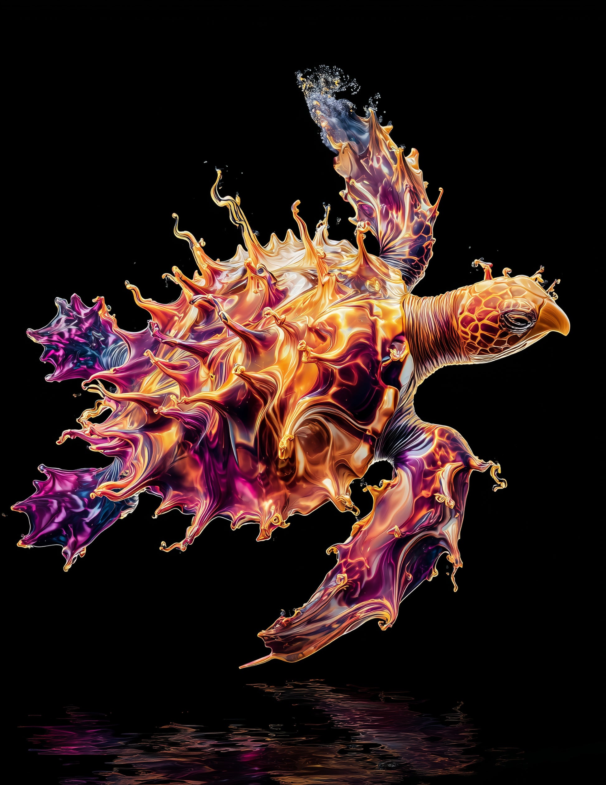 Sea Turtle — Ferrofluid Art, Amber Glow Digital Wall Art, 3 Sizes Included, Living Room Decor