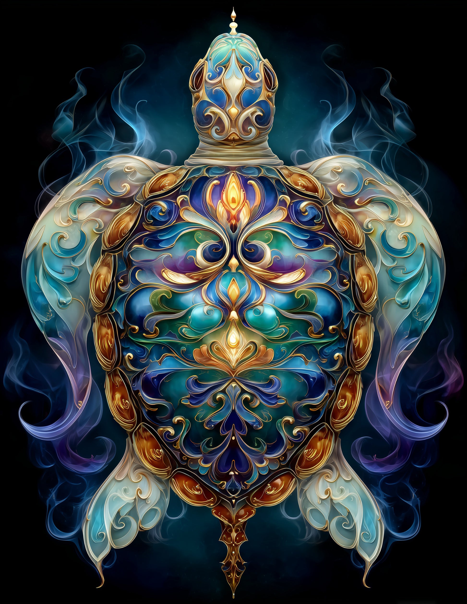 Sea Turtle — Fractal Filigree Art, Midnight Hues Digital Wall Art, 3 Sizes Included, Living Room Decor
