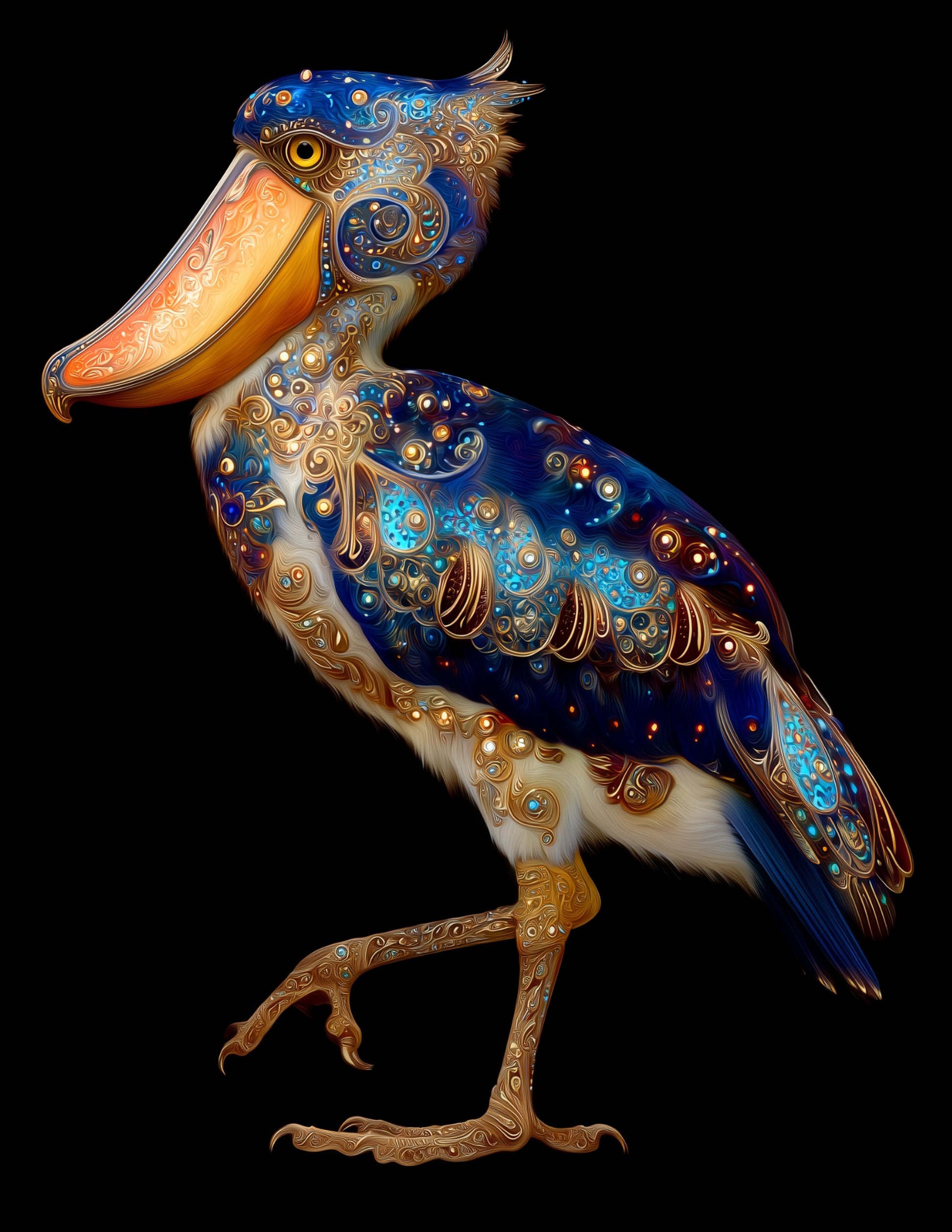 Shoebill Stork — Fractal Filigree Art, Layered Hues Digital Wall Art, 3 Sizes Included, Living Room Decor