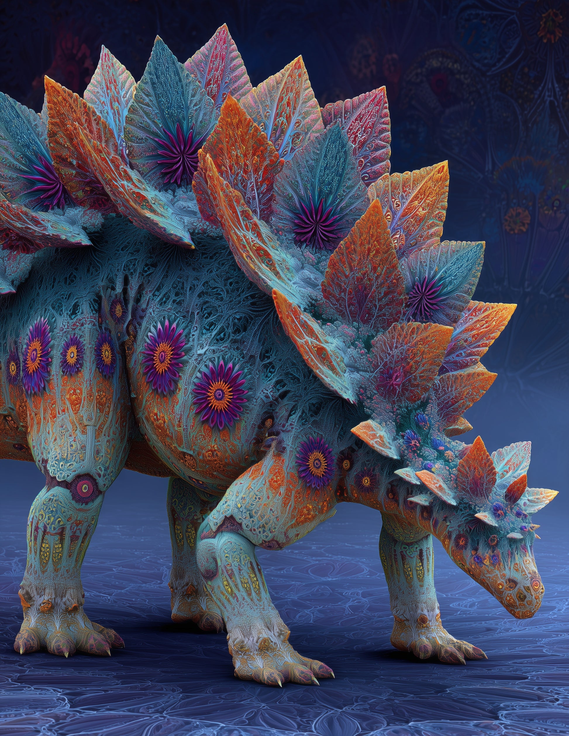 Bring the beauty of stegosaurus fractal filigree art into your home with this digital wall print, featuring subtle color variation and refined detail.