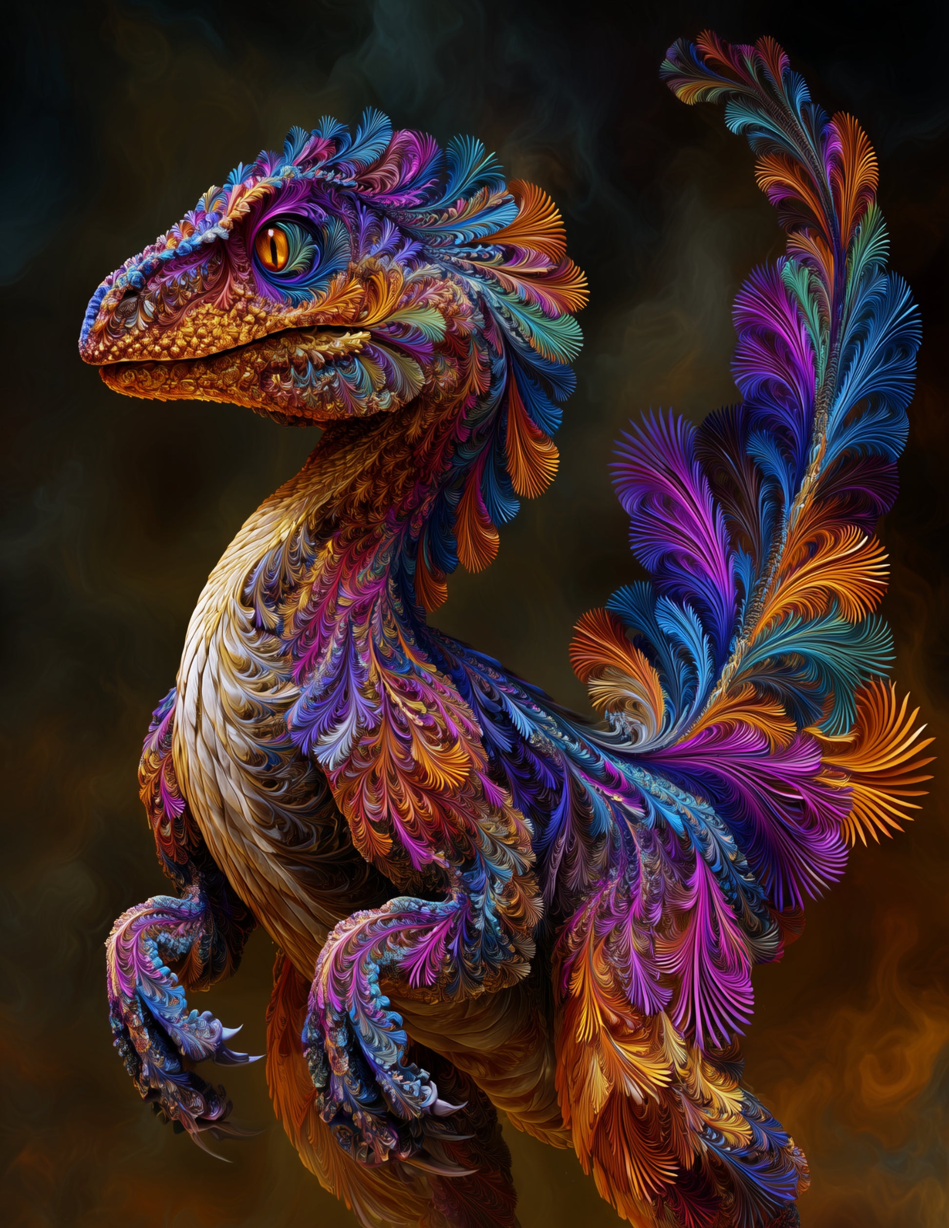 Velociraptor — Fractal Filigree Art, Vibrant Palette Digital Wall Art, 3 Sizes Included, Living Room Decor