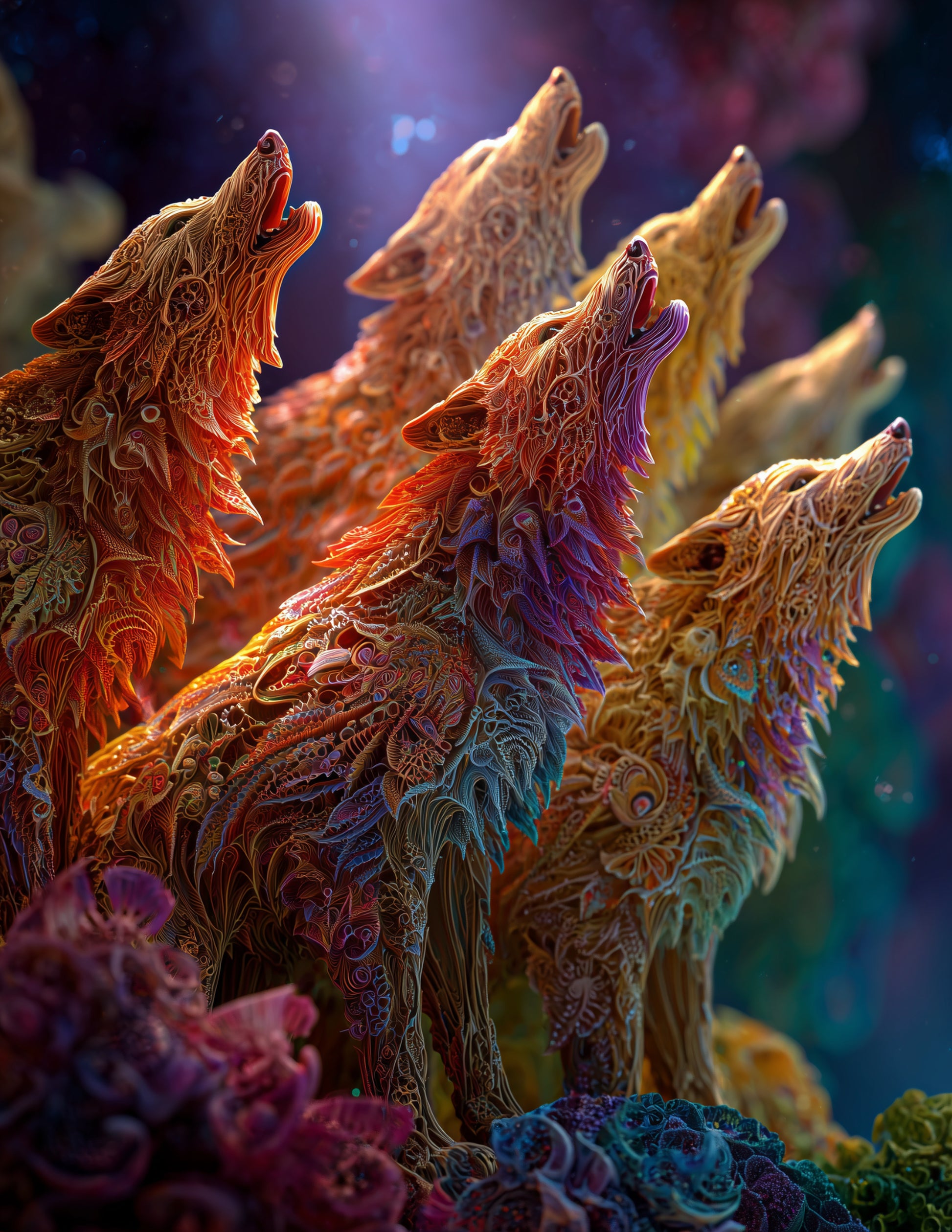 Bring the beauty of wolf fractal filigree pack art into your home with this digital wall print, featuring subtle color variation and refined detail.