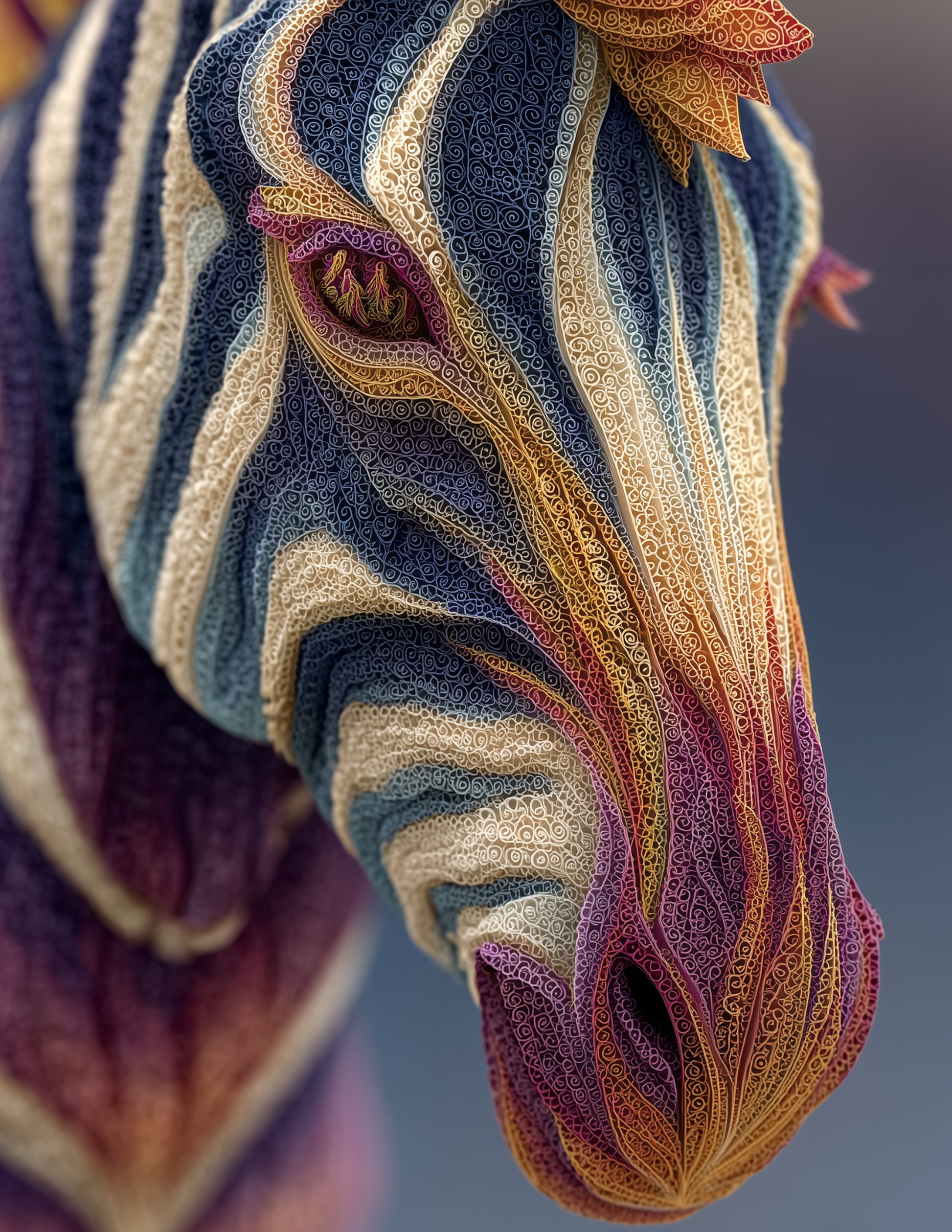 Zebra — Fractal Filigree Art, Soft Gradients Digital Wall Art, 3 Sizes Included, Living Room Decor