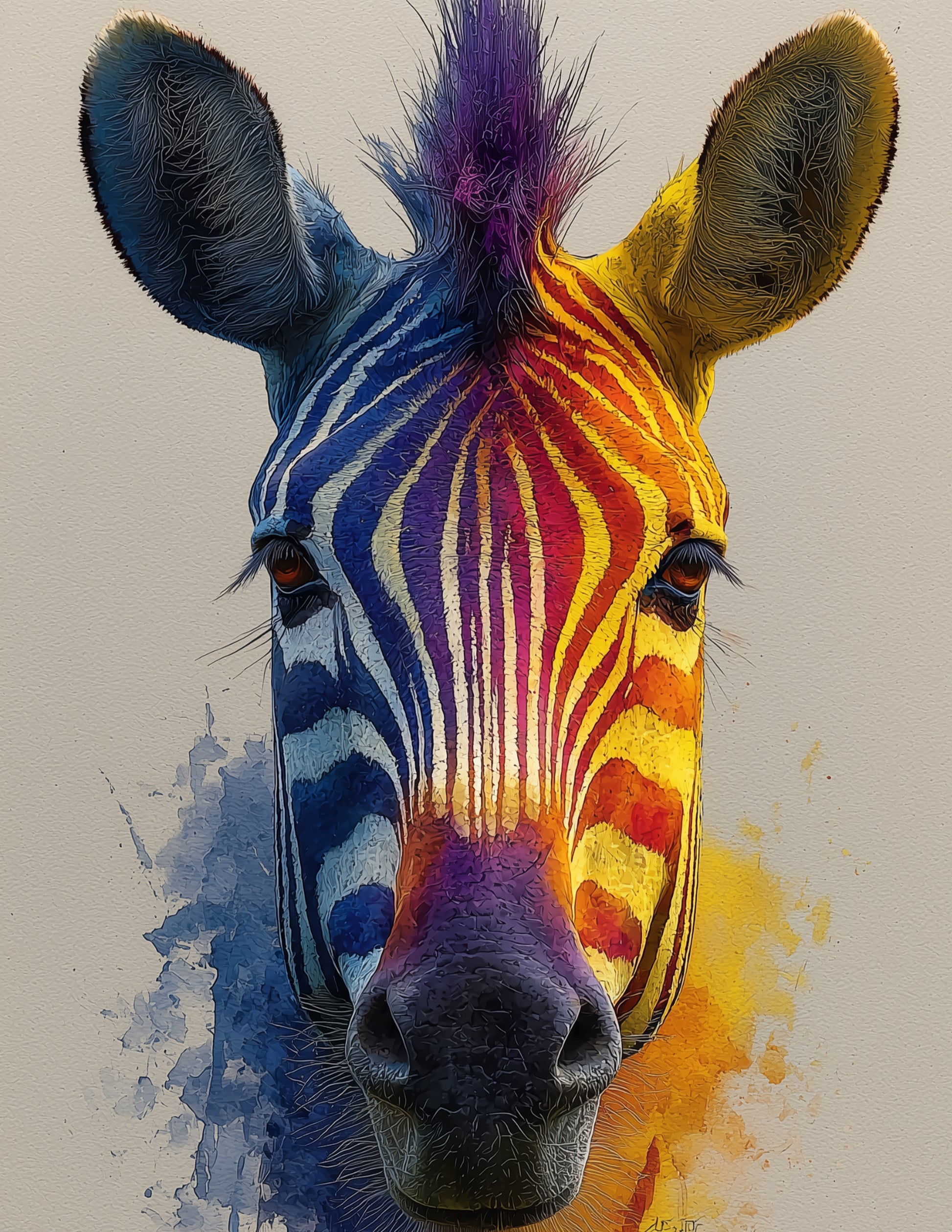 Zebra — Watercolor Art, Vibrant Hues Digital Wall Art, 3 Sizes Included, Living Room Decor